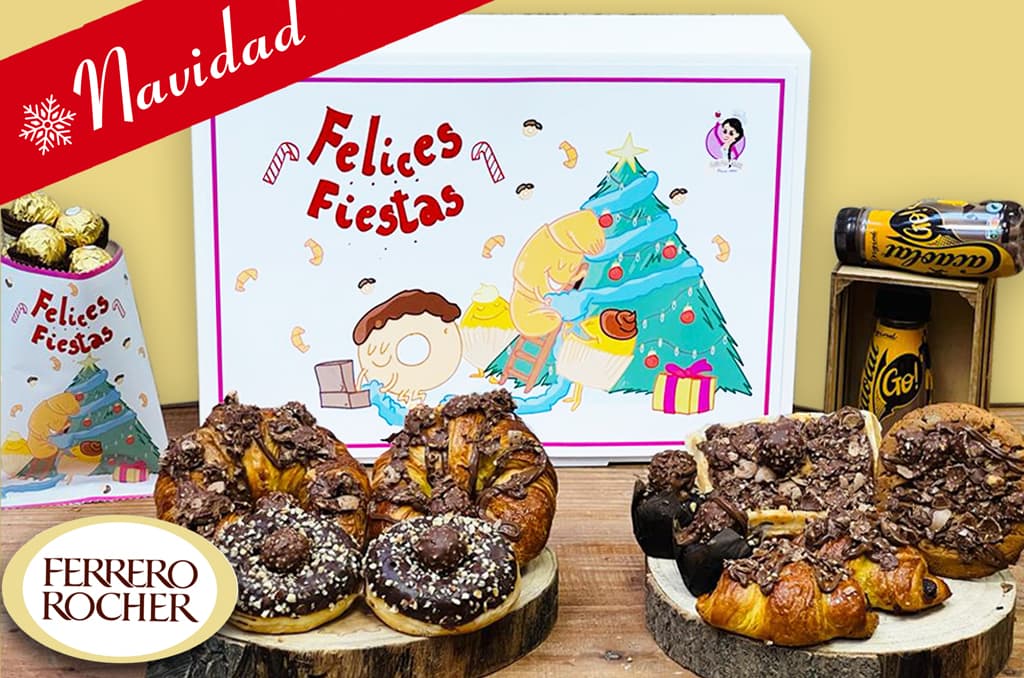 - 2 Croissants gourmet de mantequilla bañados en Nutella y Ferrero Rocher